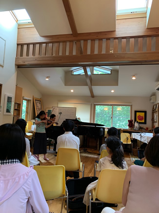 私は幸運にもこれまで素晴らしい指導者に恵まれてきました。しかし、優秀な演奏家や高名な指導者が、必ずしも生徒にとってベストな指導を行っていないことの方が多いのが現実です。その理由は因習や思い込み等さまざまですが、私が考える指導者の責務は、それぞれの生徒本人が本来持つ能力を最短距離で引き出す方法を考え、実践する事です。人は誰でも素晴らしい芸術的才能を持っています。その眠れる才能をいち早く生徒に気づかせ、自信と勇気を与えることによって、自らの力で才能に磨きをかけていくことができるよう全面的に後押しをすることが、指導者の努めであると考えます。私は自分の持てる全ての知識と知恵を以て、生徒の未来のために貢献したいと願っています。 (右の写真は夏の恒例行事となっている日光ヴァイオリンセミナーのひとこまです。)